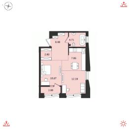 Кухня-гостиная с двумя окнами 20,05м2 с возможностью изолировать еще одну комнату.