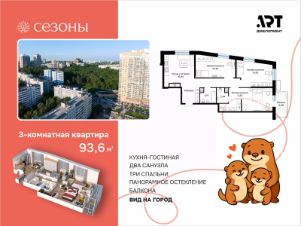 Квартира 93,7 кв.м. свободной планировки с видами на город и Дендрарий.
