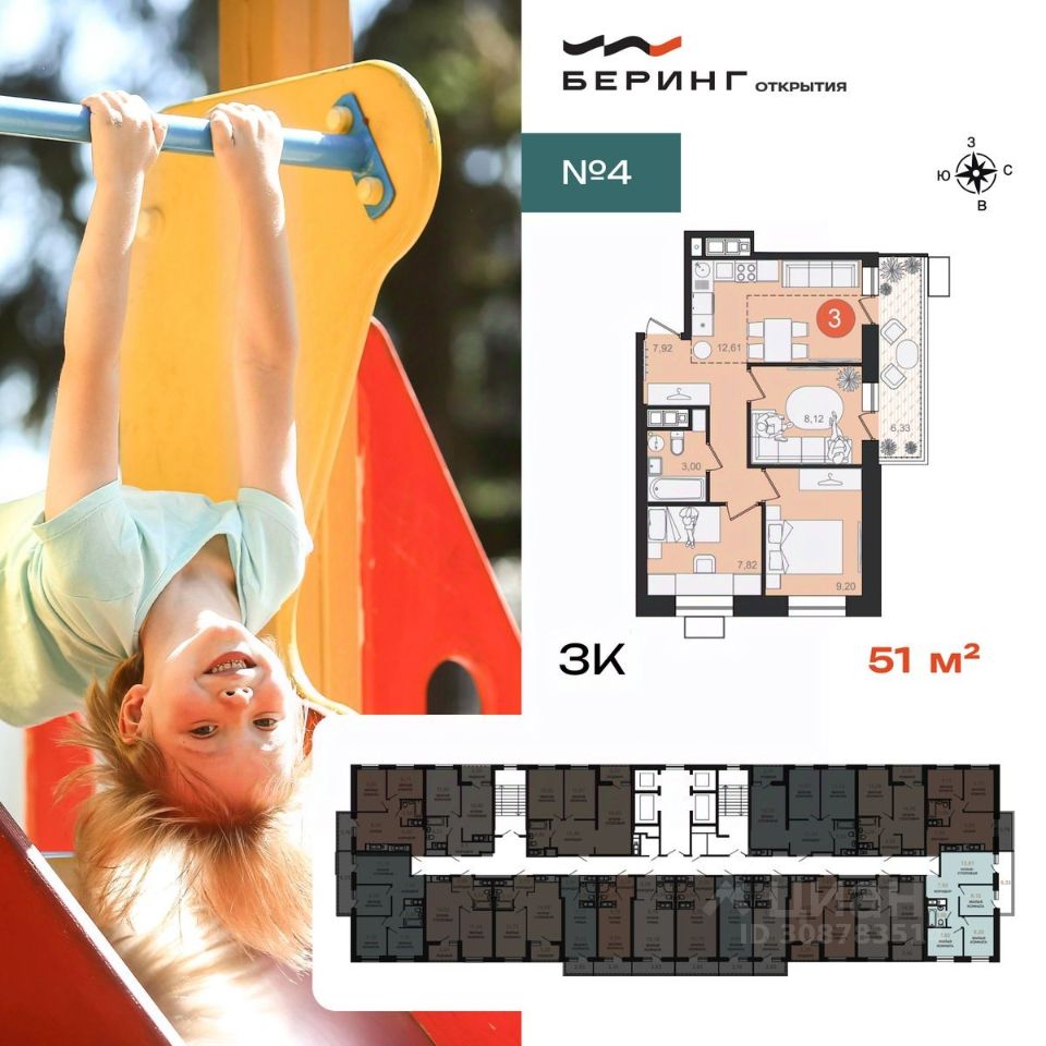 Функциональная 3-комнaтная кваpтира с 3 раздельными спальнями. Большой балкон с панорамным остеклением как персональная зона отдыха, работы или место хранения.