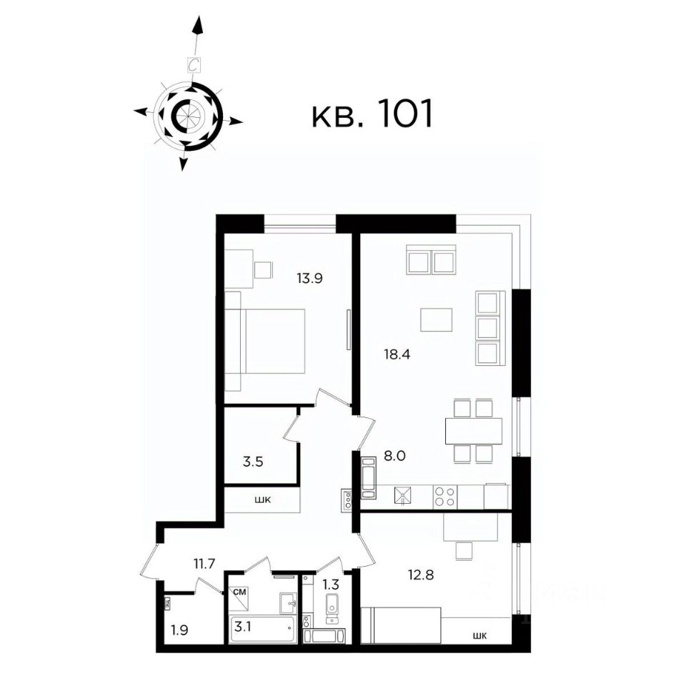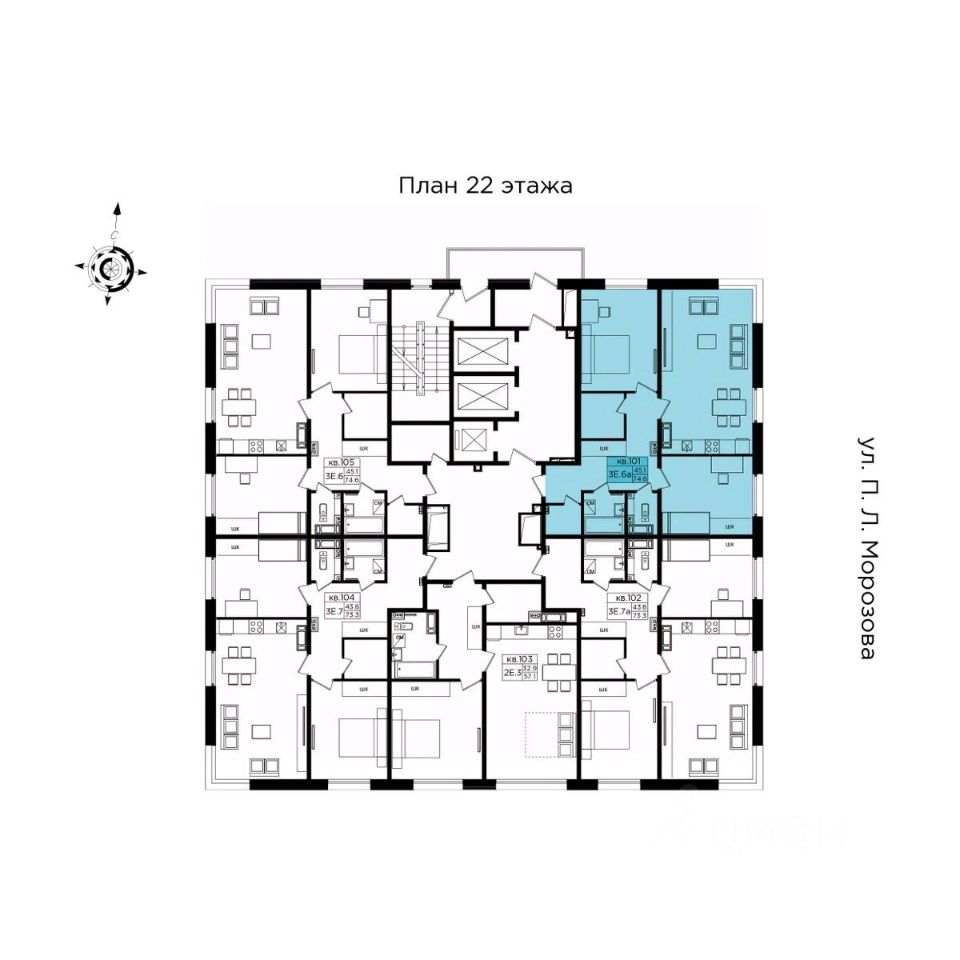 Продаётся 3-комнатная квартира в строящемся доме (Строение 1) на 22 этаже.