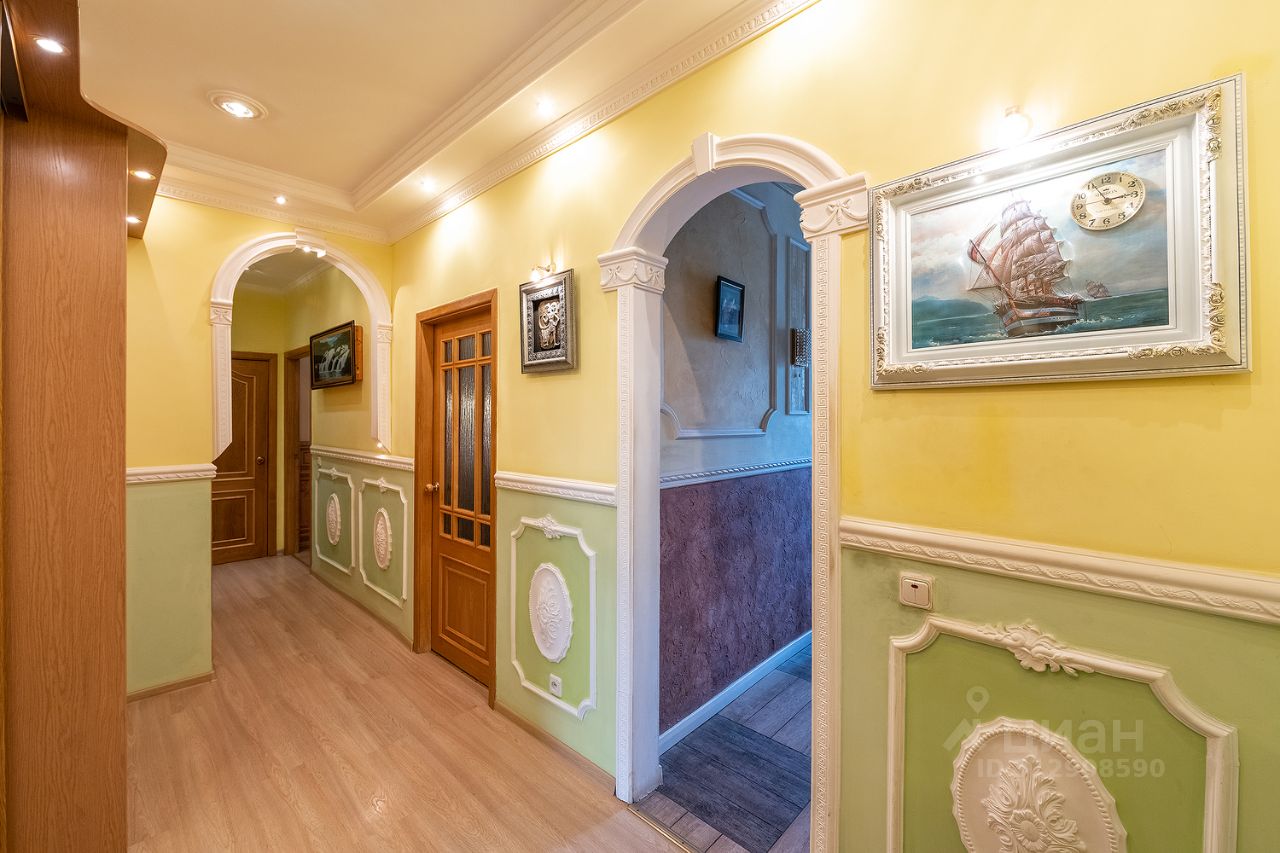 Стены отделаны местами фактурной штукатуркой, обоями, даже фресками, заказанными специально для этой квартиры. При этом квартира очень светлая, ухоженная и обладает благополучной аурой), в ней приятно находиться и проживать.