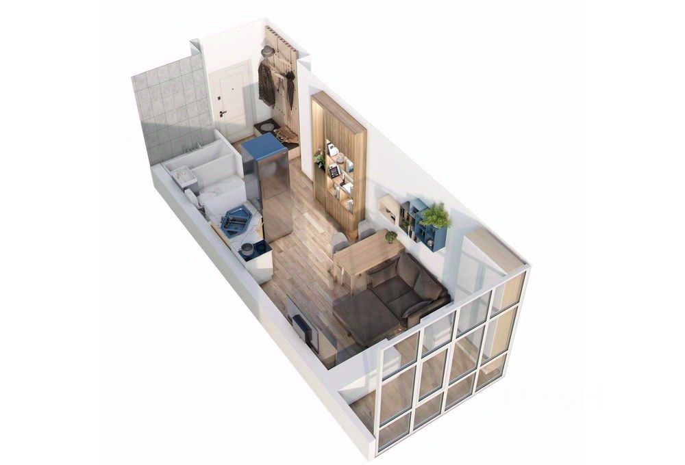 Квартира-студия без первоначального взноса. Балкон с панорамным остеклением как персональная зона отдыха, работы или место хранения. Идеальный вариант для сдачи в аренду (ЖК расположен рядом с ЖД- и автовокзалами, р-н с высокой арендной платой)
