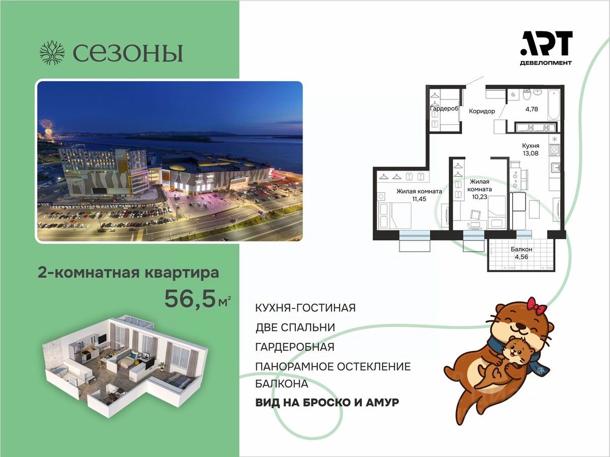 Квартира 56,12 кв.м свободной планировки с видами на Амур и Броско.