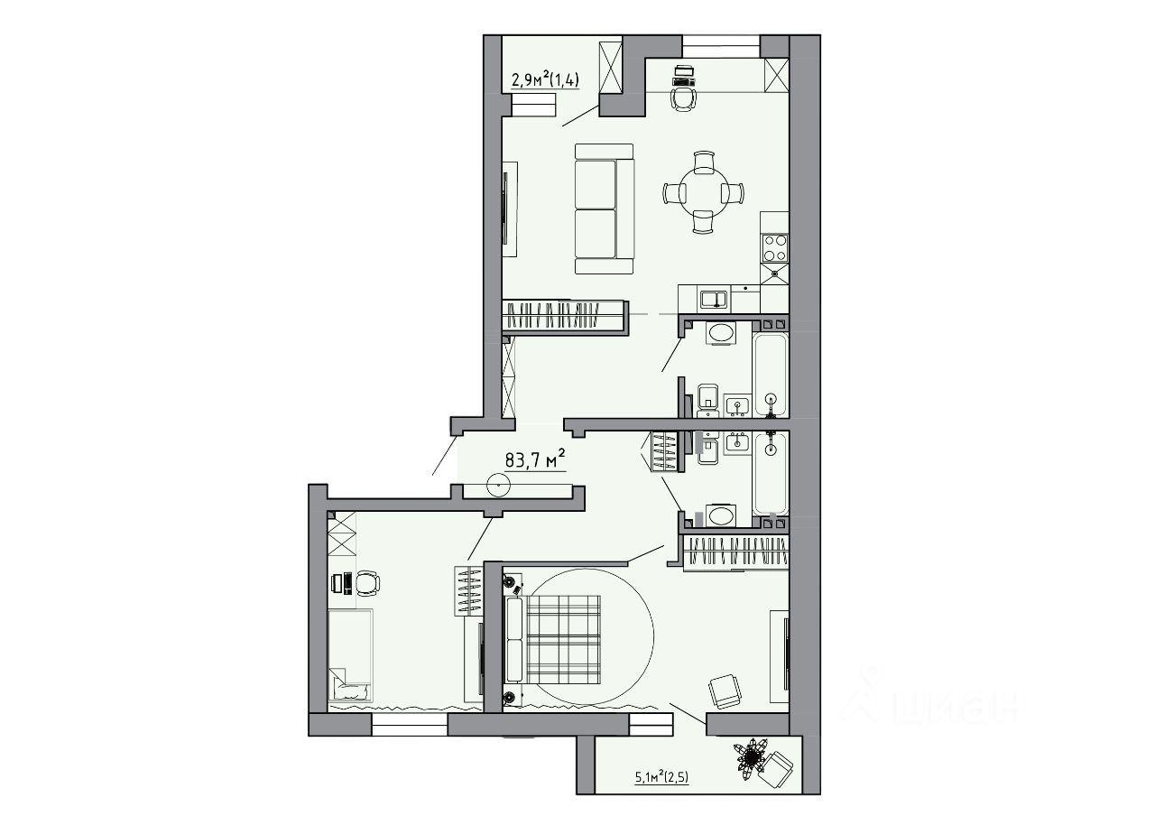 Продаётся 2-комнатная квартира в строящемся доме (Дом 4), срок сдачи: III-кв. 2025, общей площадью 86.9 кв.м., на 2 этаже. Современная архитектура в гармонии с природой