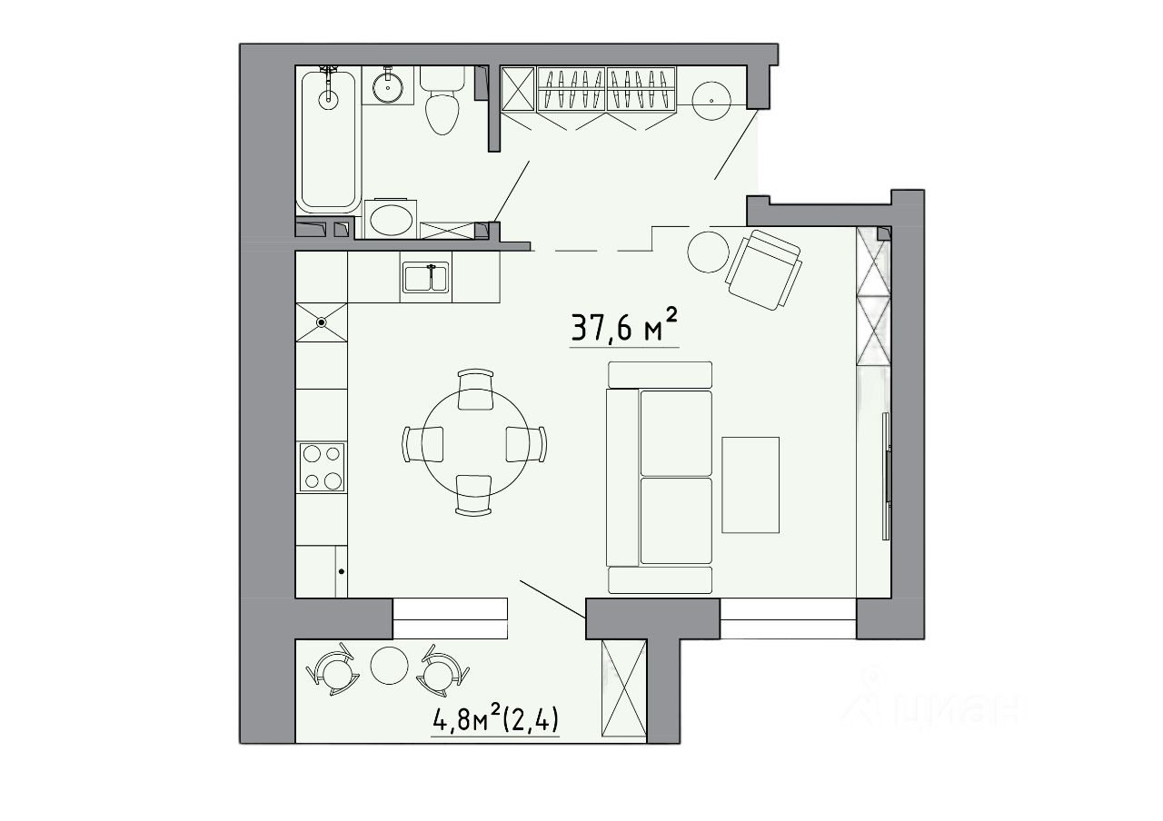 Продаётся 1-комнатная квартира в строящемся доме (Дом 4), срок сдачи: IV-кв. 2025, общей площадью 39.3 кв.м., на 3 этаже. Современная архитектура в гармонии с природой