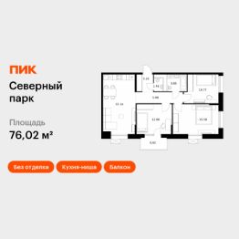 Продаётся 3-комн. квартира площадью 76,02 кв.м на 2 этаже 10 этажного дома (Корпус 10, Секция 1) проекта ПИК Северный парк. Светлый просторный подъезд на уровне земли, функциональная планировка, большие окна, без отделки.