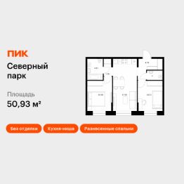 Продаётся 2-комн. квартира площадью 50,93 кв.м на 1 этаже 10 этажного дома (Корпус 10, Секция 1) проекта ПИК Северный парк. Светлый просторный подъезд на уровне земли, функциональная планировка, большие окна, без отделки.