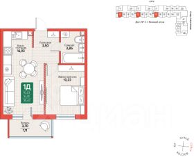 - Кухня-гостиная (16,93 м²) просторная зона для приготовления пищи и отдыха. Здесь можно разместить обеденную зону и зону для приема гостей.