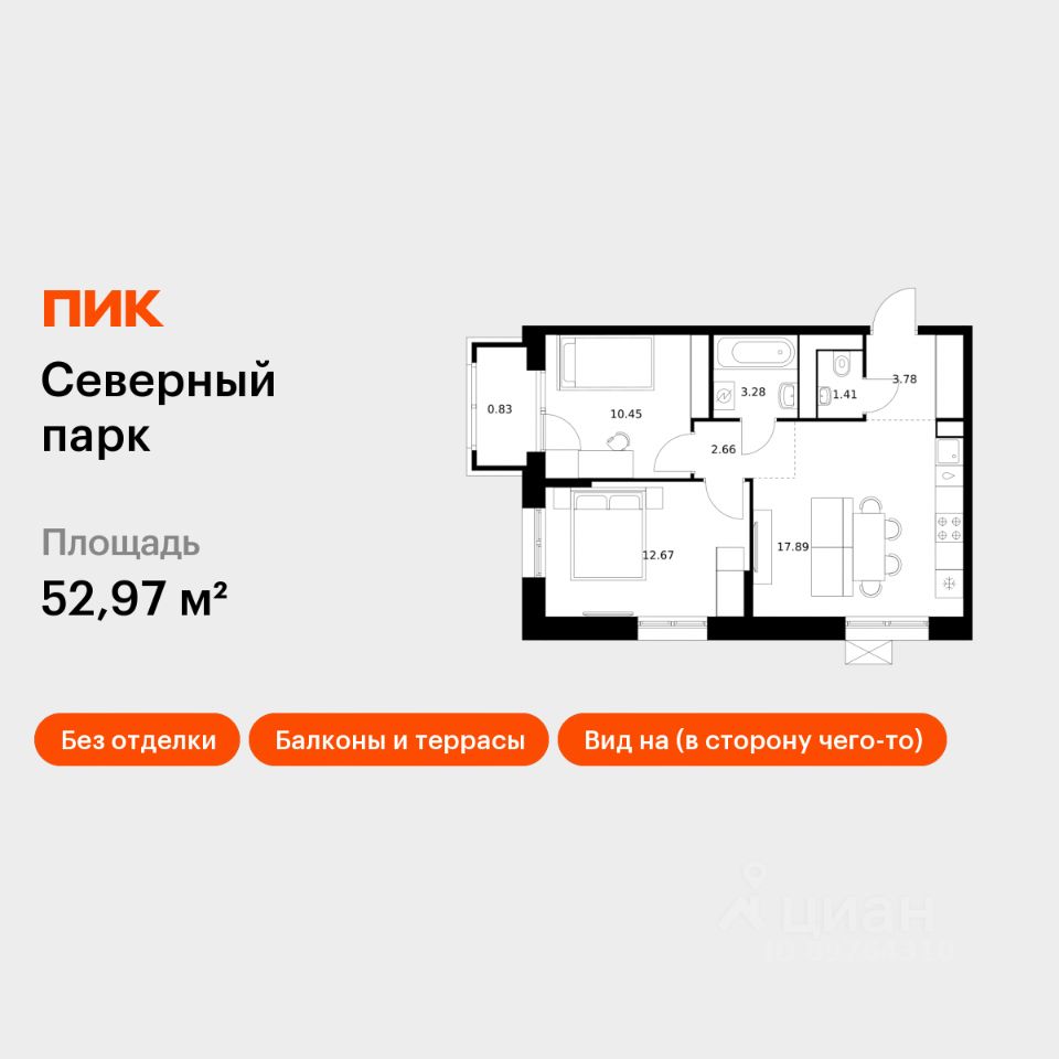 Продаётся 2-комн. квартира площадью 52,97 кв.м на 8 этаже 10 этажного дома (Корпус 12, Секция 1) проекта ПИК Северный парк. Светлый просторный подъезд на уровне земли, функциональная планировка, большие окна, без отделки.
