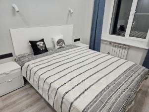 Гостиная и кухня. Новая мебель, техника, сантехника, дизайнерские радиаторы, большие окна, двери на балкон из кухни и гостиной. Варочная газовая панель, духовка, микроволновая печь европейских производителей, холодильник Bosch, другая техника, аксессуары (набор кастрюль, ножей, столовых приборов и разное другое). Вентиляция спроектирована инженерами, в т.ч. кондиционер, приточная вентиляция Бризер. В гостиной TV 55" c soundbar, подведен кабель TV, кабель интернет. Новый раскладывающийся диван. Стол трансформер. Много естественного и дополнительного света. Спальня: Полностью мебелирована, 3-х секционный шкаф, стеллаж, кровать 1600 с подъёмным механизмом, две тумбы, туалетный столик, зеркало. Напротив кровати место для TV, выведен проводной интернет, ТВ кабель. Кондиционер.