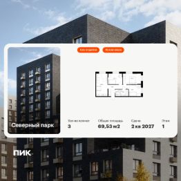 Продаётся 3-комн. квартира площадью 69,53 кв.м на 1 этаже 10 этажного дома (Корпус 10, Секция 2) проекта ПИК Северный парк. Светлый просторный подъезд на уровне земли, функциональная планировка, большие окна, без отделки.