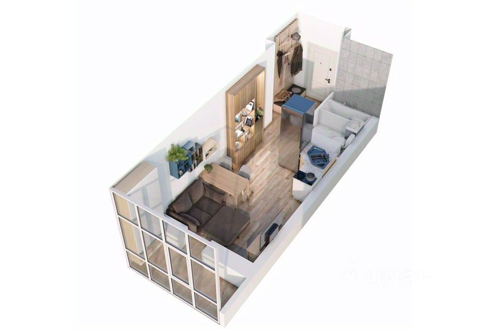 Квартира-студия без первоначального взноса. Балкон с панорамным остеклением как персональная зона отдыха, работы или место хранения. Идеальный вариант для сдачи в аренду (ЖК расположен рядом с ЖД- и автовокзалами, р-н с высокой арендной платой)