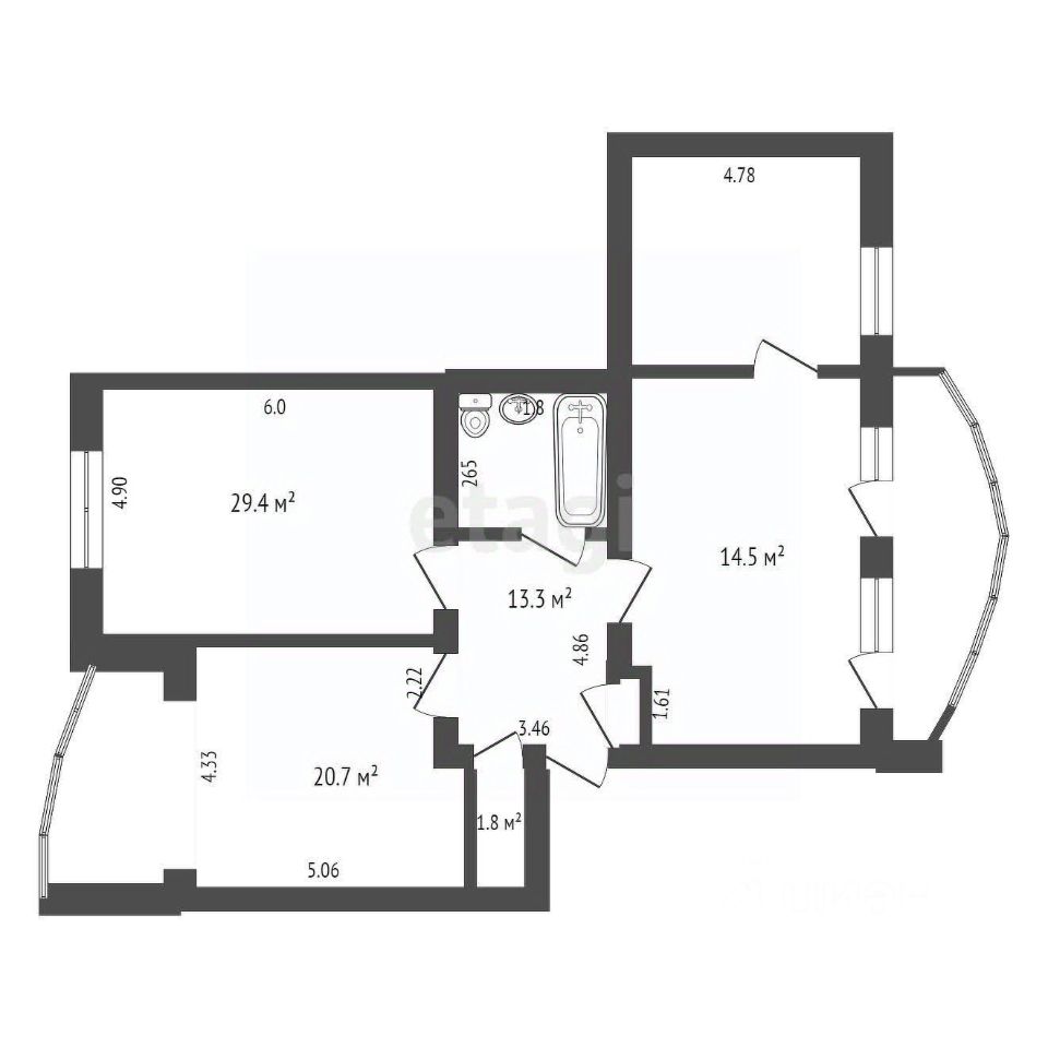Эта квартира общей площадью 122 квадратных метра предлагает идеальную планировку для комфортной жизни. У Вас будет большая кухня-гостиная, где Вы сможете проводить незабываемые семейные вечера и принимать гостей. Три раздельные просторные комнаты создадут уютное пространство для Вас и Ваших детей, а два санузла обеспечат максимальное удобство для всей семьи.