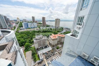 Арт. 108373659 Просторная квартира с высокими потолками в центре города, в современном жилом комплексе, с закрытой, охраняемой территорией, консьержем, подземной и наземной парковкой, детской площадкой, с видами по всем сторонам света, на Амур, Площадь Славы, Комсомольскую площадь, Уссурийский бульвар. Развитая инфраструктура, рядом набережная, салоны красоты, сауны, фитнес клуб, гастромаркет, салоны одежды, банки, рестораны и кафе, все необходимое для жизни. Квартира занимает весь этаж, сверху никого, на площадке лоджия. В секции 2 грузопассажирских лифта.