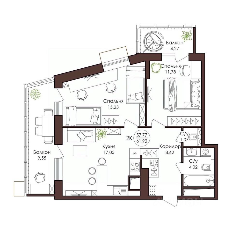Общая площадь61,92 м²