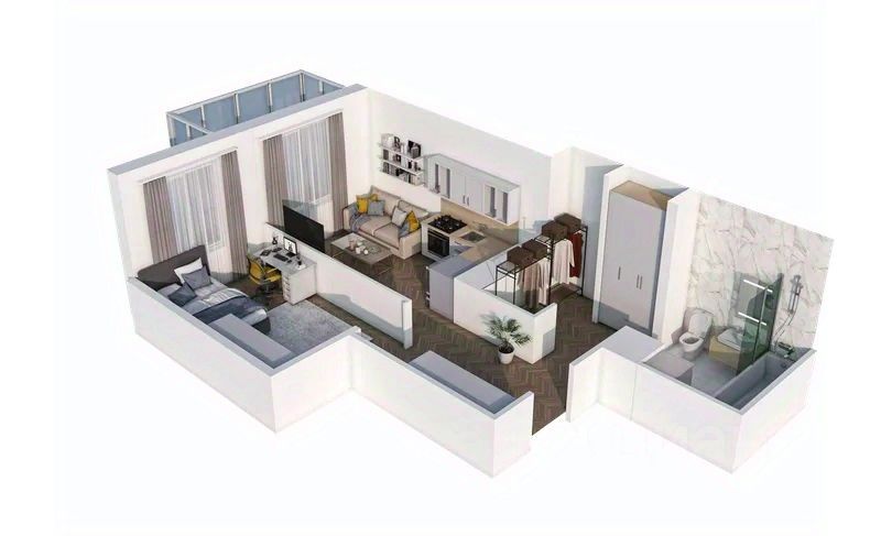 Квартира 43,4 кв.м свободной планировки с видами на город, Амур и Броско.