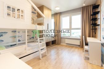 Планировочное решение представлено просторной кухней-гостиной и 3 изолированными жилыми комнатами: взрослой спальней и 2 детскими. Полезная площадь взрослой спальни была увеличена за счёт присоединения лоджии. Ванная комната и туалет отделены друг от друга и являются полноценными санузлами, в коридоре организована просторная гардеробная, также имеется объемная система хранения в прихожей.