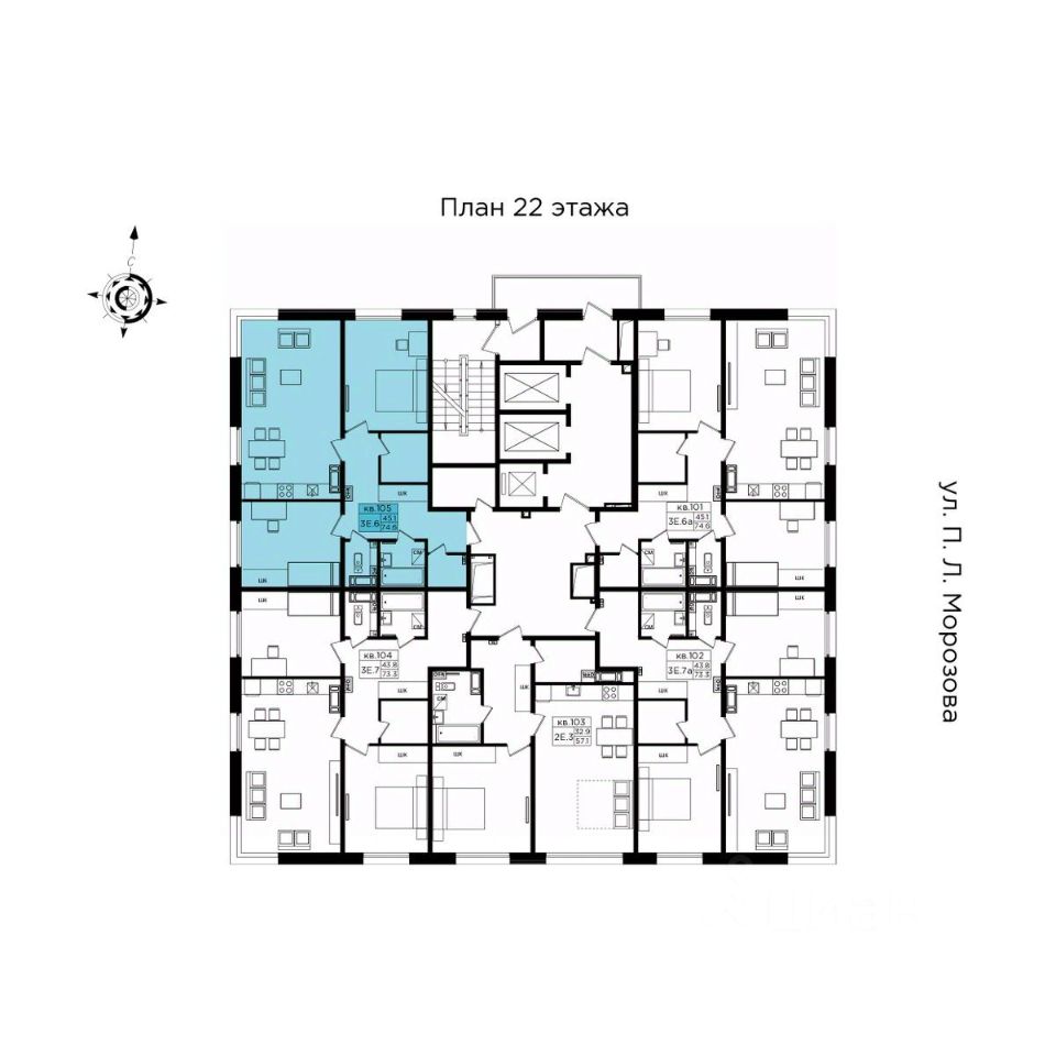 Продаётся 3-комнатная квартира в строящемся доме (Строение 1) на 22 этаже.