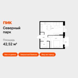 Продаётся 1-комн. квартира площадью 42,52 кв.м на 4 этаже 10 этажного дома (Корпус 12, Секция 1) проекта ПИК Северный парк. Светлый просторный подъезд на уровне земли, функциональная планировка, большие окна, без отделки.