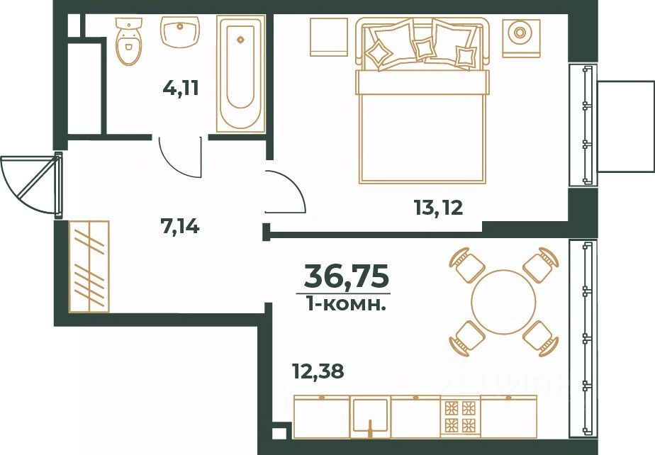 Общая площадь36,75 м²
