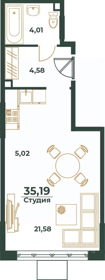 Общая площадь35,19 м²