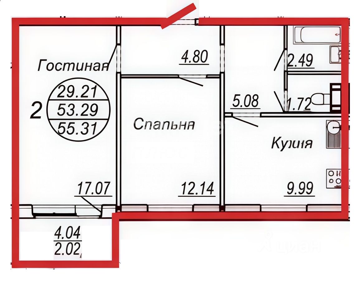 55,31 м², две изолированные комнаты, просторная кухня-гостиная — идеальная планировка для тех, кто ценит личное пространство.