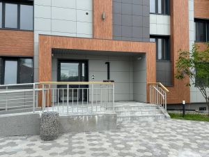 - Входная группа выполнена в дизайнерском оформлении со светлыми подъездами с панорамными окнами и отделка из премиум материалов.