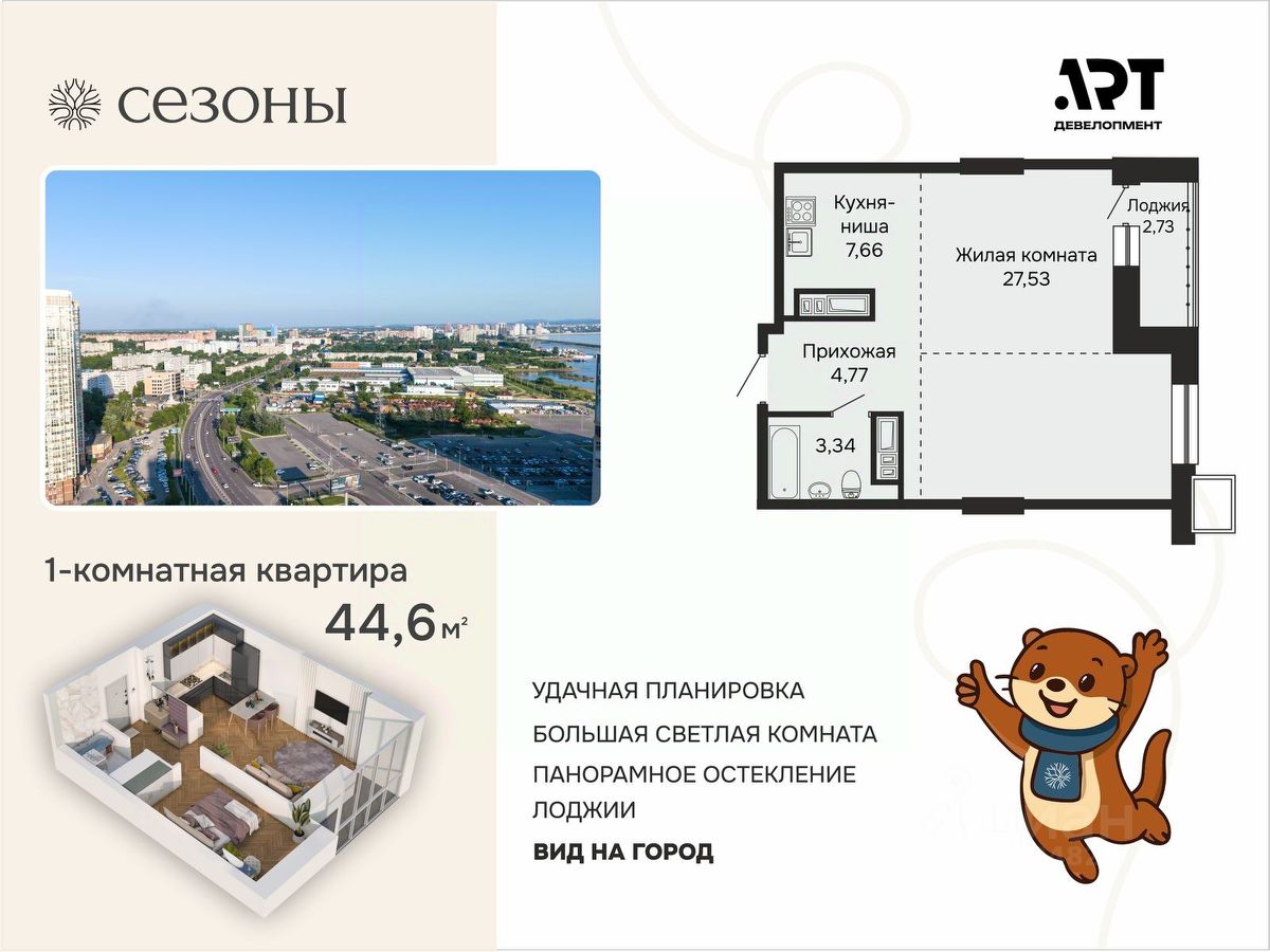 Осенние скидки! Выгода до 1,9 миллиона рублей. Стартовые цены - от 7,5 миллионов рублей. Квартира 44,99 м2 свободной планировки с видами на Броско и Амур