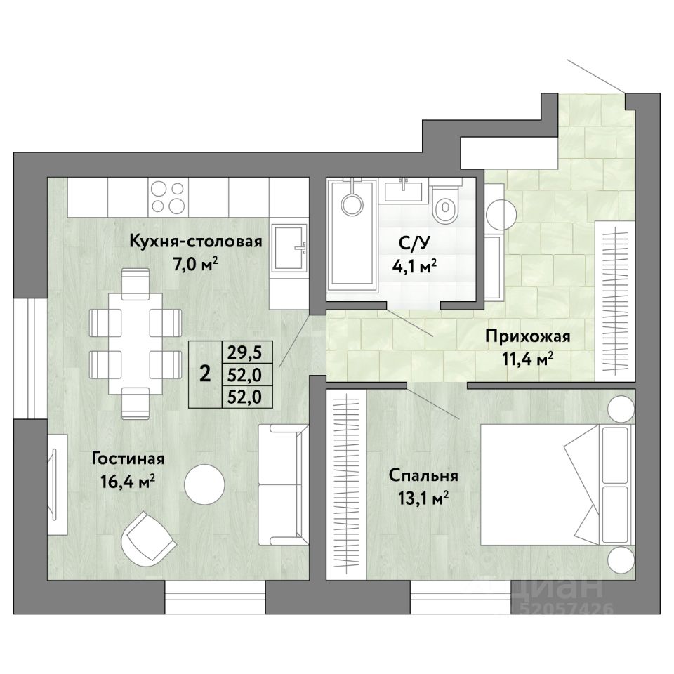 Продаётся 2-комнатная квартира в строящемся доме (Жилой дом 2), срок сдачи: III-кв. 2027, общей площадью 52 кв.м., на 1 этаже. Новый жилой комплекс Green 2 от Специализированного застройщика "ЮНИТ" расположен по адресу: г. Хабаровск, по ул. Воронежская.