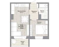 Общая площадь 34,65 кв.м, жилой 33.1кв.м, кухня-гостиная-16.74 кв.м, квартира находится на 5 этаже 10 этажного дома.