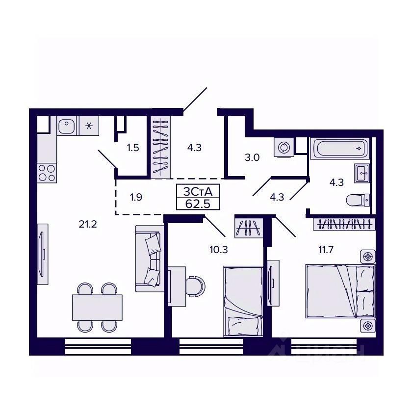 Продаётся 3-комнатная квартира в строящемся доме (Корпус 1), срок сдачи: II-кв. 2028, общей площадью 62.5 кв.м., на 2 этаже. Новый жилой комплекс "Самородный квартал" от Специализированного застройщика "ВИРА 27" расположен в г. Хабаровск по ул. Карла Маркса.