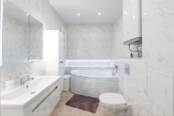 Имеется место для хранения одежды: Шкаф-купе в прихожей и вместительная гардеробная в спальне. Два Раздельных санузла.