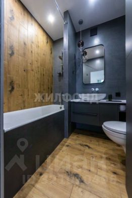 | Ванная комната оборудована сантехникой Grоhе и Jасоb Dеlаfоn. Установлена чугунная ванна, функционирует бойлер на 50 литров. Продумано место для хранения и размещения стиральной машины. Конструкция тумбы и санузла исключает риск повреждения от влаги.