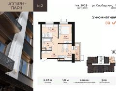 Светлая 2-комнaтная кваpтира 40-42 м². Здесь 2 раздельные спальни, кухня, комфортный санузел и балкон, который можно оборудовать как зону отдыха или кабинет. Межкомнатные стены можно снести для реализации вашего дизайн-проекта.
