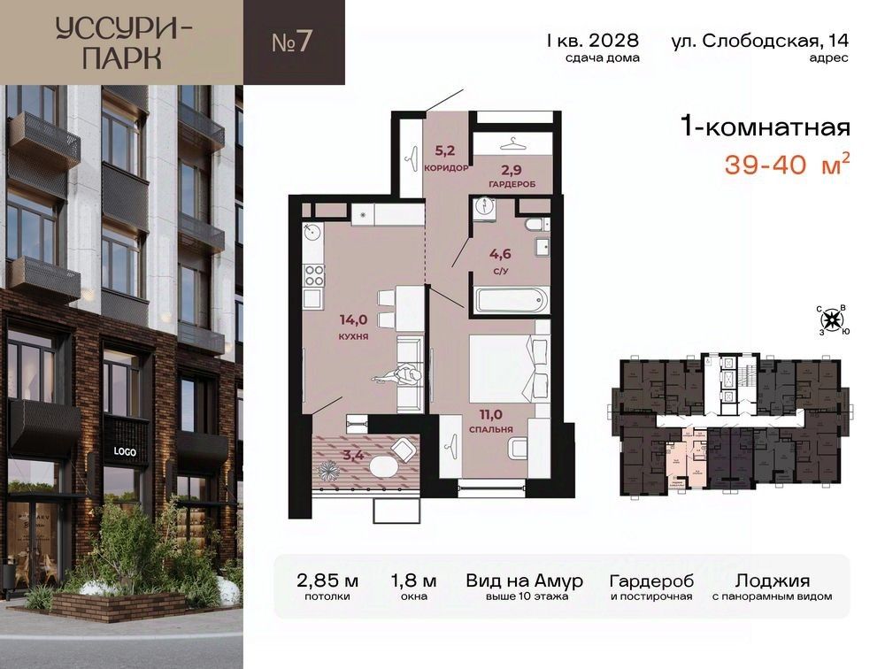 СТАРТ ПРОДАЖ р-н пл. Блюхера - тихий центр города. Уссурийский бульвар, школы, детские сады в 10 мин пешком. Планируемая сдача дома - 1 квартал 2028 года. Рассрочка 0% на первый взнос до 1 года без увеличения стоимости квартиры Выгода до 2,5 млн на старте продаж До конца ноября скидка 2% для участников СВО, медицинских работников, учителей, работников ОПК Просторная светлая 1-комнaтная кваpтира 36-41 м². Здесь спальня, кухня-гостиная, большой санузел, а также лоджия, которую можно оборудовать как зону отдыха или кабинет. Высокие потолки 2,85 - 3,30 м от стяжки пола, большие окна до 1,8 м и панорамные виды с лоджии - все это дает максимум света, легкости и свободного пространства. После 10 этажа открывается вид на Амур и потрясающие хабаровские закаты О ЖК: Архитектурная доминанта района. Концепция от известного архитектурного бюро PERGAEV BURO Высокие потолки 2,85-3,30 м и большие окна до 1,8 м Приватная территория под видеонаблюдением. Детская площадка, воркаут, гриль-зона, зона отдыха и догхаб с выгулом Дизайнерские холл и отделка в подъезде На первом этаже клубная гостиная для соседей, колясочная, лобби с мягкими зонами, гостевой санузел Подземный паркинг с лифтом от квартиры до машины и усилителем сигнала связи УЛУЧШЕННАЯ ЧЕРНОВАЯ ОТДЕЛКА: > Выровненные стены > Стяжка пола > Окна с откосами, подоконниками и фурнитурой > Сантехнические выпуски под установку оборудования > Горизонтальная система отопления > Подводка водоснабжения > Гидроизоляция в санузле > Распределительный щит для электропроводки > Системы вентиляции в кухонной зоне и санузле > Металлическая входная дверь Гардиан, которая не требует замены > Балкон с витражным остеклением > Индивидуальные счетчики на все коммуникации Предчистовая отделка с электрикой по всей квартире - 16 000 ₽/м² Девелопер КЕТОМ - 16 лет на рынке Хабаровска, 18 сданных объектов, безопасный эскроу-счет