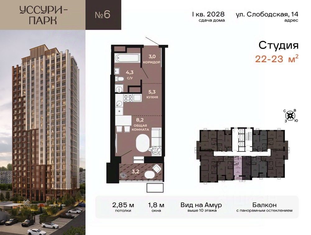 После 10 этажа открывается вид на Амур и потрясающие хабаровские закаты