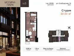 СТАРТ ПРОДАЖ р-н пл. Блюхера - тихий центр города. Уссурийский бульвар, школы, детские сады в 10 мин пешком. Планируемая сдача дома - 1 квартал 2028 года. Рассрочка 0% на первый взнос до 1 года без увеличения стоимости квартиры Выгода до 2,5 млн на старте продаж До конца ноября скидка 2% для участников СВО, медицинских работников, учителей, работников ОПК Светлая квартира-студия 24 м² на южной стороне Здесь кухня-ниша, жилая зона, большой санузел и балкон, который можно оборудовать как место отдыха. Такая эргономически правильная планировка позволяет разграничить кухню и спальное место и сэкономить на ремонте и меблировке. Высокие потолки 2,85 - 3,30 м от стяжки пола, большие окна до 1,8 м и панорамные виды на город с балкона - все это дает максимум света, легкости и свободного пространства. После 10 этажа открывается вид на Амур и потрясающие хабаровские закаты Идеальный вариант для инвестиций. Средняя стоимость аренды - от 50 000 руб/мес, среднесуточная - от 3 500 руб О ЖК: Архитектурная доминанта района. Концепция от известного архитектурного бюро PERGAEV BURO Высокие потолки 2,85-3,30 м и большие окна до 1,8 м Приватная территория под видеонаблюдением. Детская площадка, воркаут, гриль-зона, зона отдыха и догхаб с выгулом Дизайнерские холл и отделка в подъезде На первом этаже клубная гостиная для соседей, колясочная, лобби с мягкими зонами, гостевой санузел Подземный паркинг с лифтом от квартиры до машины и усилителем сигнала связи УЛУЧШЕННАЯ ЧЕРНОВАЯ ОТДЕЛКА: > Выровненные стены > Стяжка пола > Окна с откосами, подоконниками и фурнитурой > Сантехнические выпуски под установку оборудования > Горизонтальная система отопления > Подводка водоснабжения > Гидроизоляция в санузле > Распределительный щит для электропроводки > Системы вентиляции в кухонной зоне и санузле > Металлическая входная дверь Гардиан, которая не требует замены > Балкон с витражным остеклением > Индивидуальные счетчики на все коммуникации Предчистовая отделка с электрикой по всей квартире - 16 000 ₽/м² Девелопер КЕТОМ - 16 лет на рынке Хабаровска, 18 сданных объектов, безопасный эскроу-счет