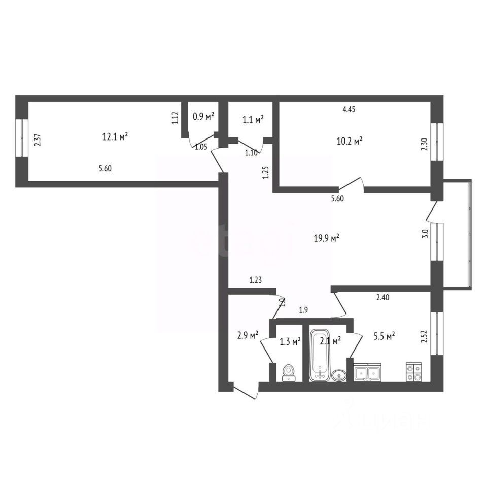 Квартира не угловая, теплая. Ключевыми преимуществами планировки являются две просторные гардеробные комнаты, что решает вопрос хранения вещей, и раздельный санузел. Три комнаты, из которых две - раздельные.