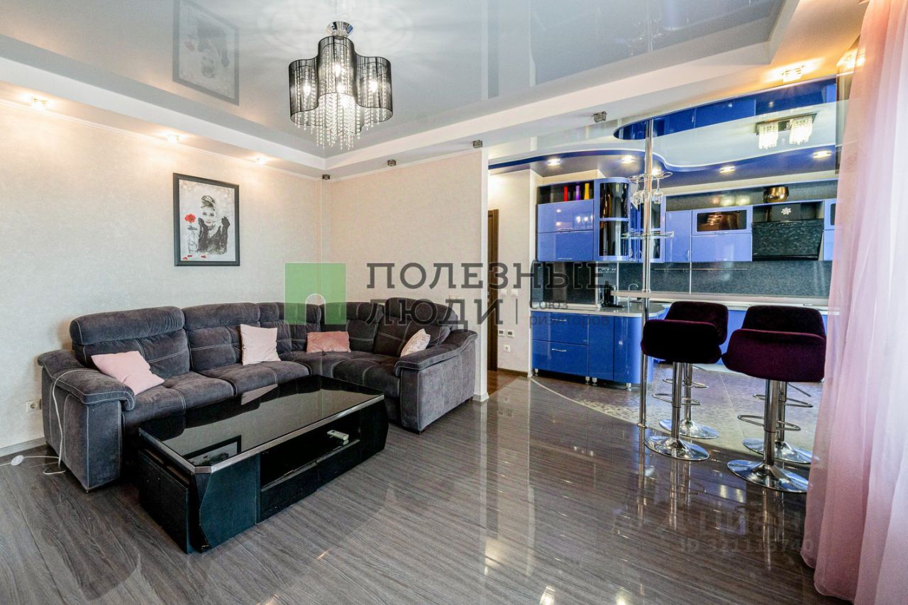 Квартира обладает удобной для жизни планировкой: просторная кухня 12.4м объединена с жилой комнатой, которые вместе образуют единое пространство кухни-гостиной более 30м.
