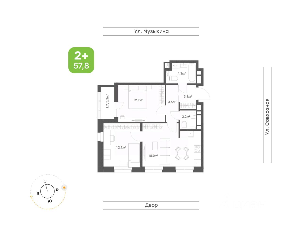 • Две спальных комнаты правильной геометрической формы. В каждой комнате найдется зона для хранения. Родительская спальня с выходом на лоджию;