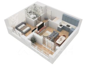 • Гостиная "3 в 1": есть выделенная ниша для кухонного гарнитура, а также обеденная зона и пространство для отдыха с выходом на лоджию;