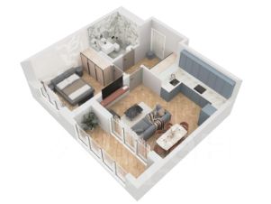• Гостиная "3 в 1": есть выделенная ниша для кухонного гарнитура, а также обеденная зона и пространство для отдыха.