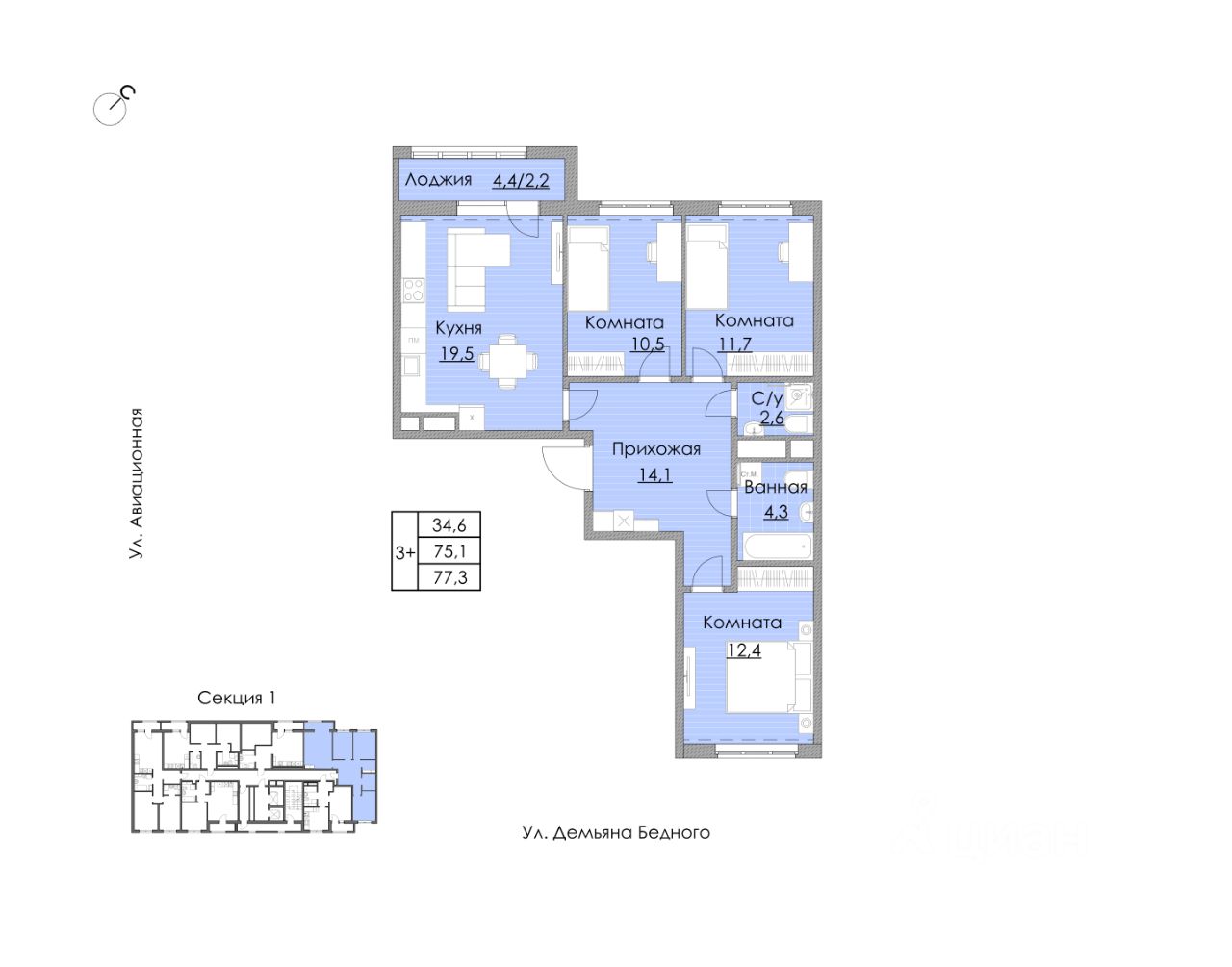 77,3 м²