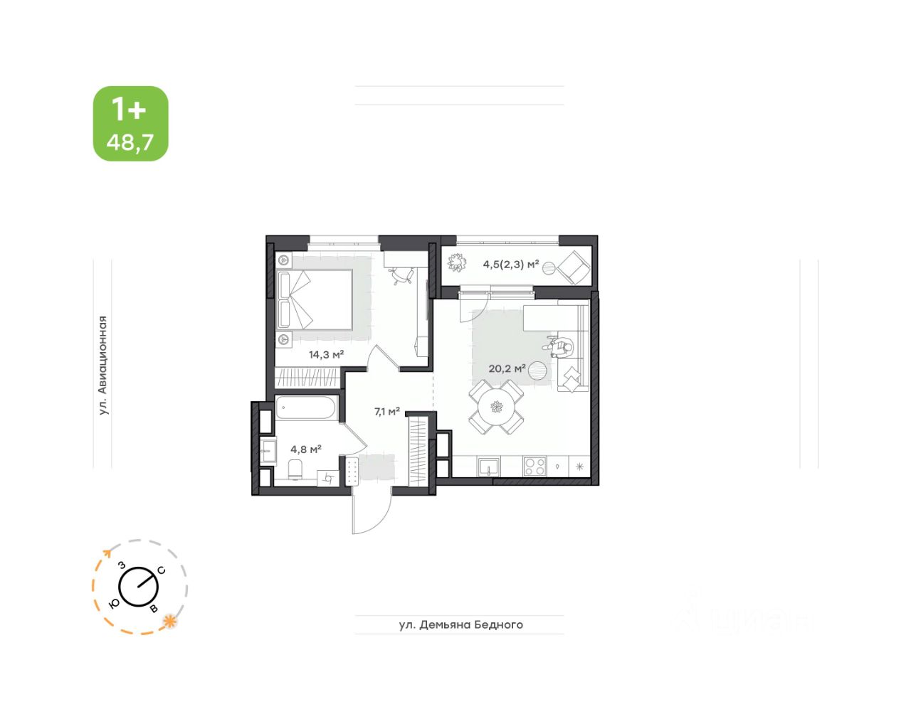 48,6 м²