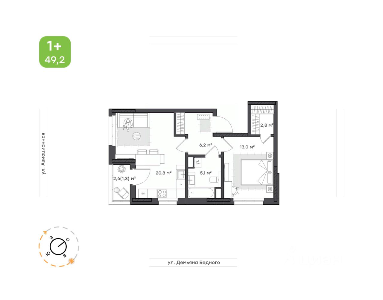 Общая площадь49,2 м²