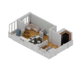 Уютная 1+ квартира для молодой семьи и людей, ценящих спокойную и уединённую жизни; Просторная кухня-гостиная с зонированием мест для готовки и отдыха; Отдельная спальня позволит сохранить приватное пространство; Широкая лоджия может стать как местом для хранения, так и местом для релакса