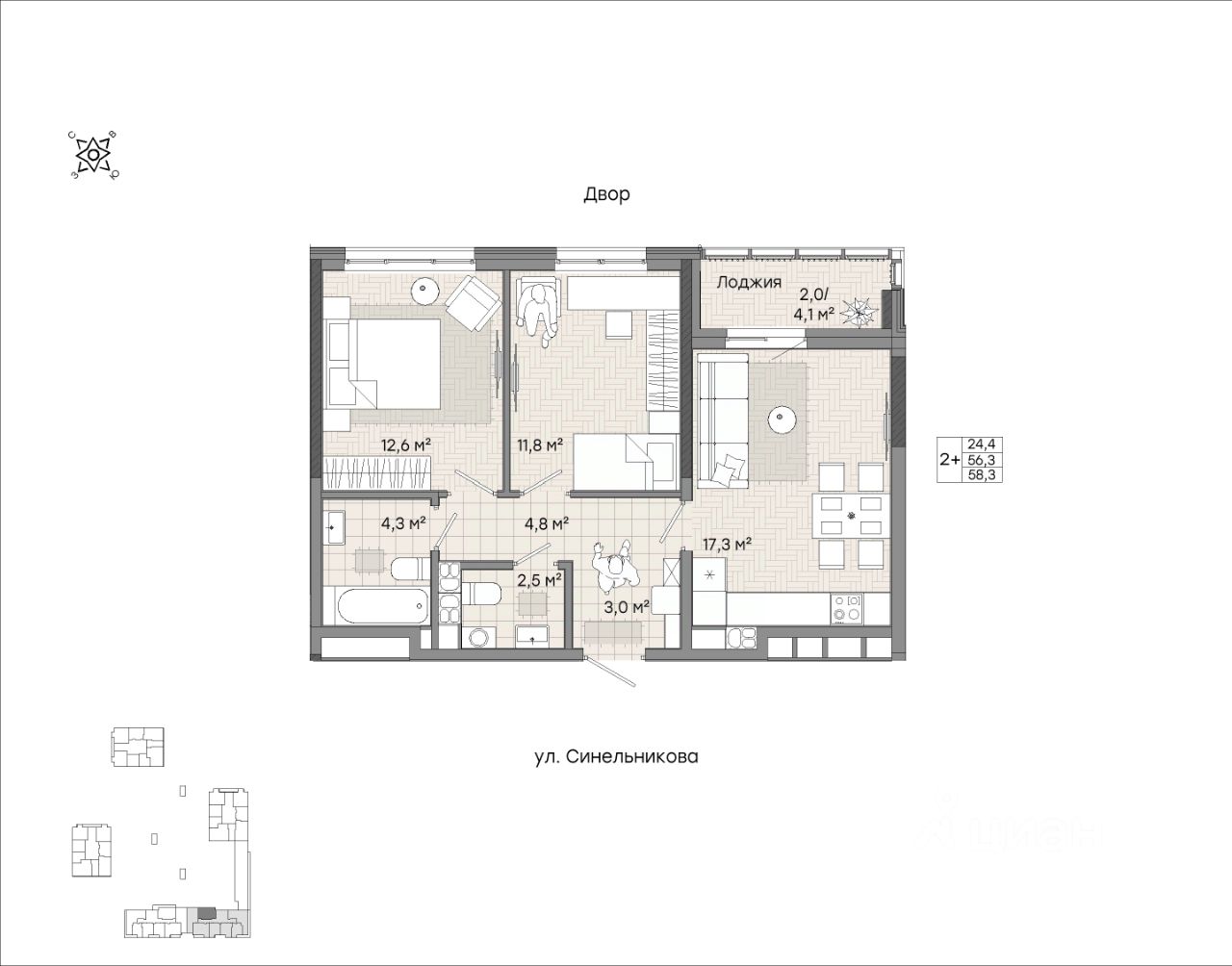 Просторные спальни позволят с организовать комфортные места для отдыха и работы;