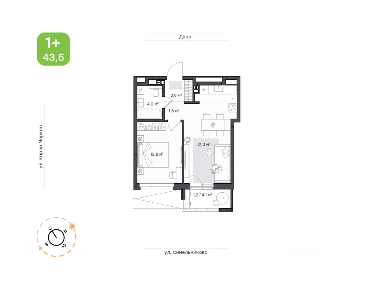 1,5-комнатная квартира для молодой пары и людей, ценящих спокойную и уединённую жизнь;