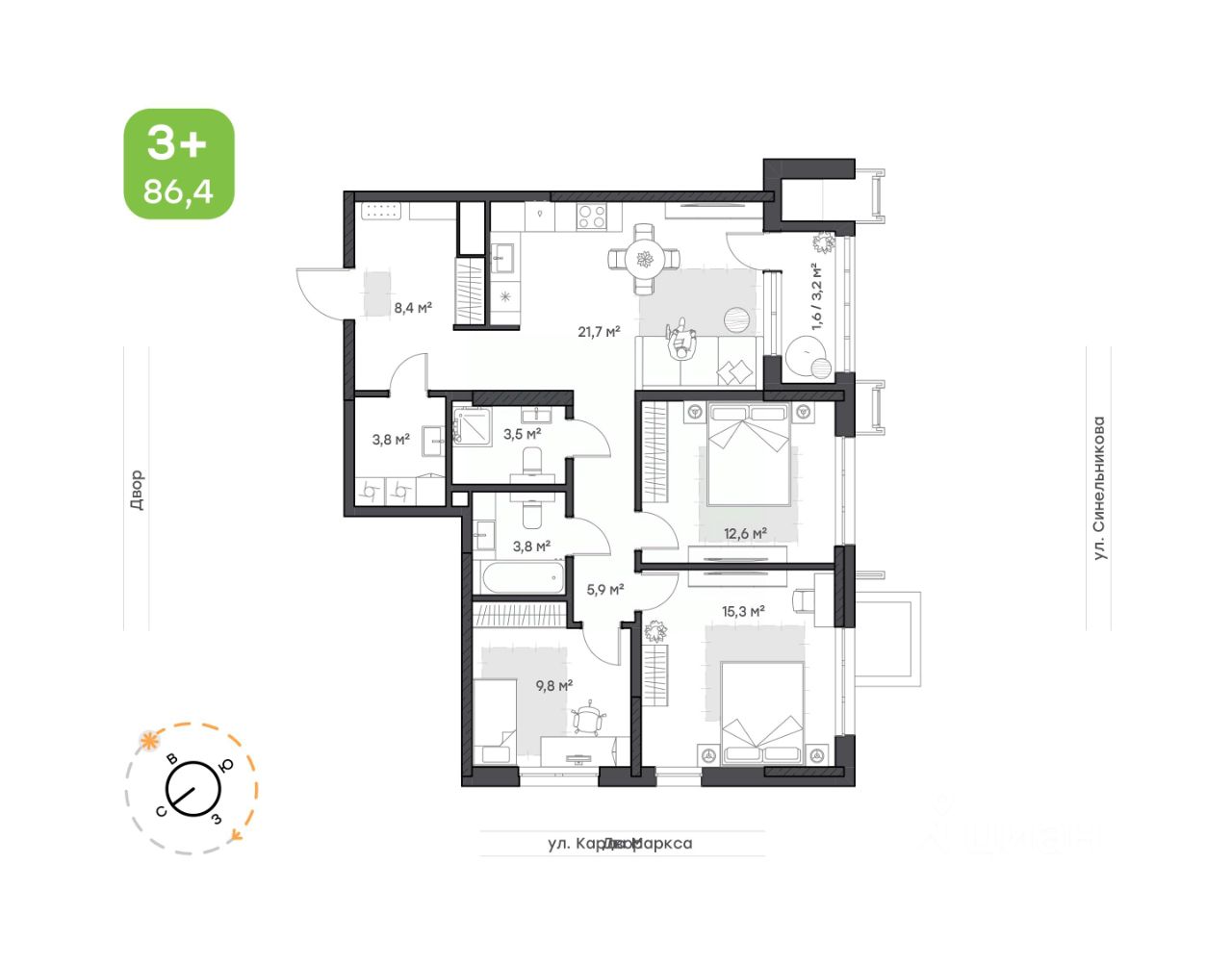 86,4 м²