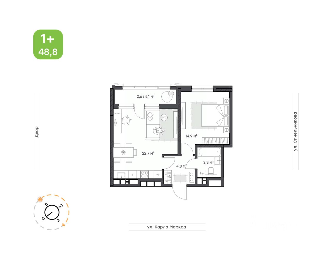 1,5-комнатная квартира для молодой пары и людей, ценящих спокойную и уединенную жизнь;